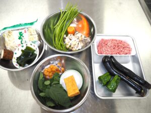 信州の郷土食を伝えていきます。具材は夏野菜(茄子・かぼちゃ)