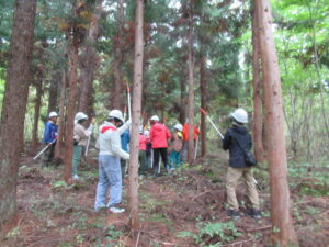 内容:枝打ちの作業、育樹学習