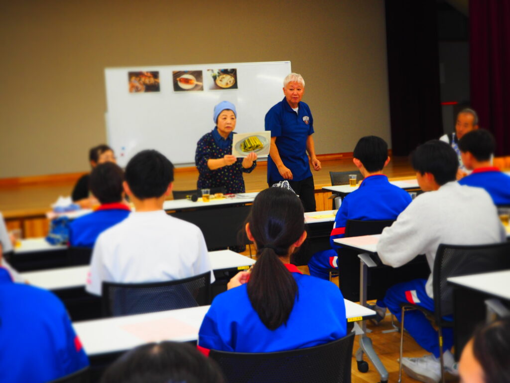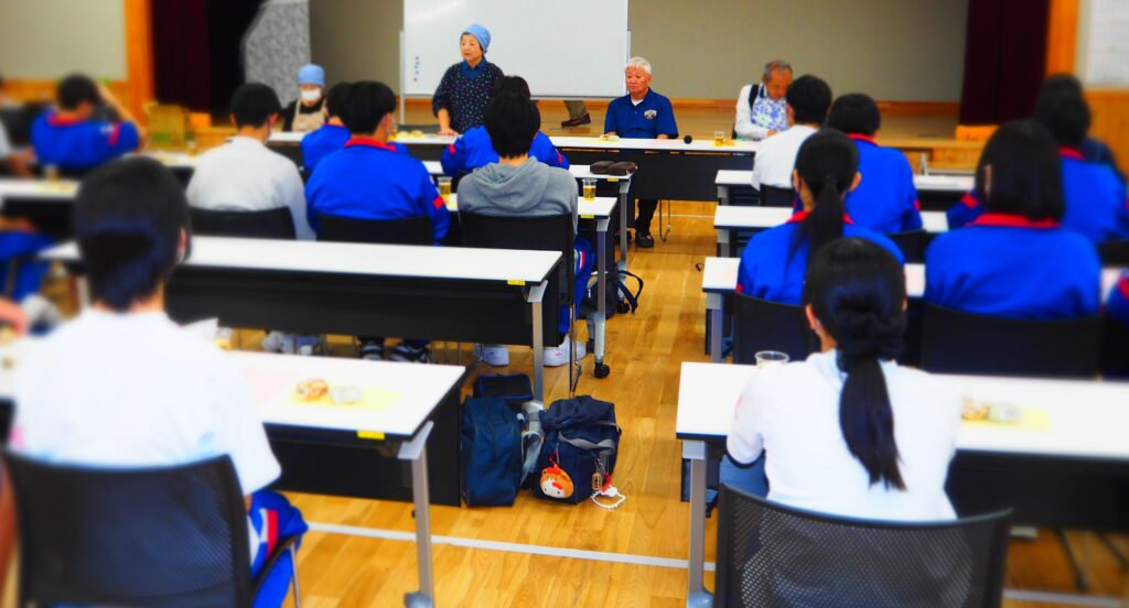 地元の中学生が郷土食おやきを学びました。信州のおやきの作って食べる、そしておやきにまつわるお話を聞く機会はとても勉強になりました。食文化を伝承していくことは大切ですね。