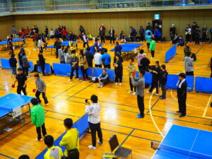 芹田地区内の各区公民館対抗戦の卓球大会を開催しました。