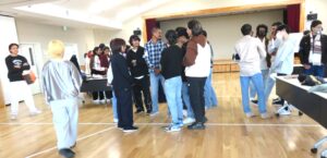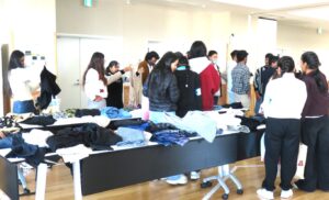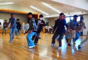 内容:長野第一学院の生徒さんが集めた古着を長野平青学園 の留学生にプレゼント。                服のプレゼントを通して多文化交流をしました♬日本の昔からある遊び「だるまさんがコロンだ!」「ハンカチ落とし」を童心に返って楽しみました。