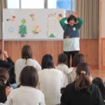 今回は、ウェンディーネさんに来ていただき、絵本の読み聞かせや、紙芝居、手遊び、と楽しい時間を過ごすことができました☆お話が始まると、みんな興味津々。