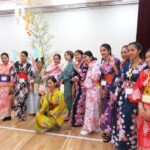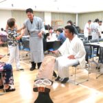 - 地域の方々の協力で浴衣の着付け