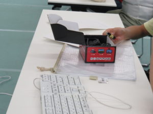 内容は、IchigoJam(イチゴジャム)と称するミニコンピューターを使って、プログラミングの初歩を勉強しました。LEDのライトを点滅させたり、計算をさせたり、2日目はゲームを作りました。コンピュータで自分の指示通りに点いたり消えたり動いたりすることは、子どもだけでなく保護者の方々も興味深かった様子です。熱心にメモを取っている親御さんもいました。ある6年生は「達成感が半端ねぇ」と満足気でした。